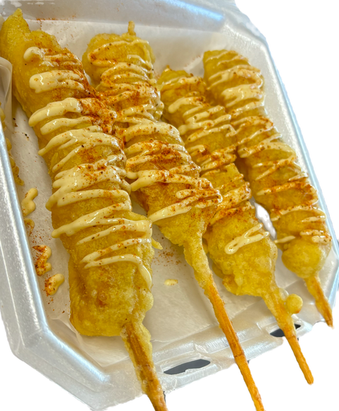 Our Korean Corn Dogs are freshly fried to achieve a perfect crispy crust. Inside, you'll enjoy a delightful mix of juicy sausage and melty cheese, creating a truly satisfying bite.